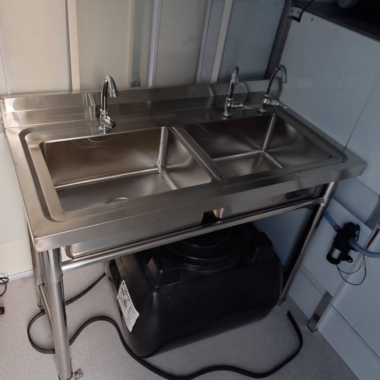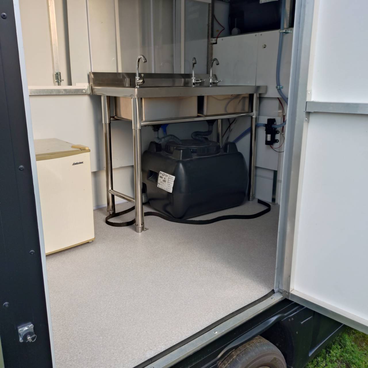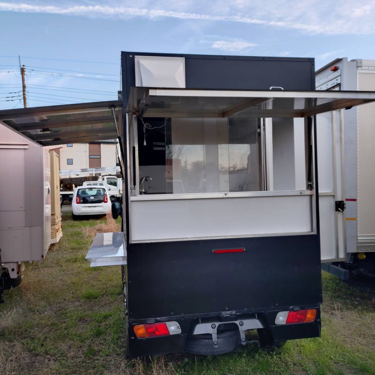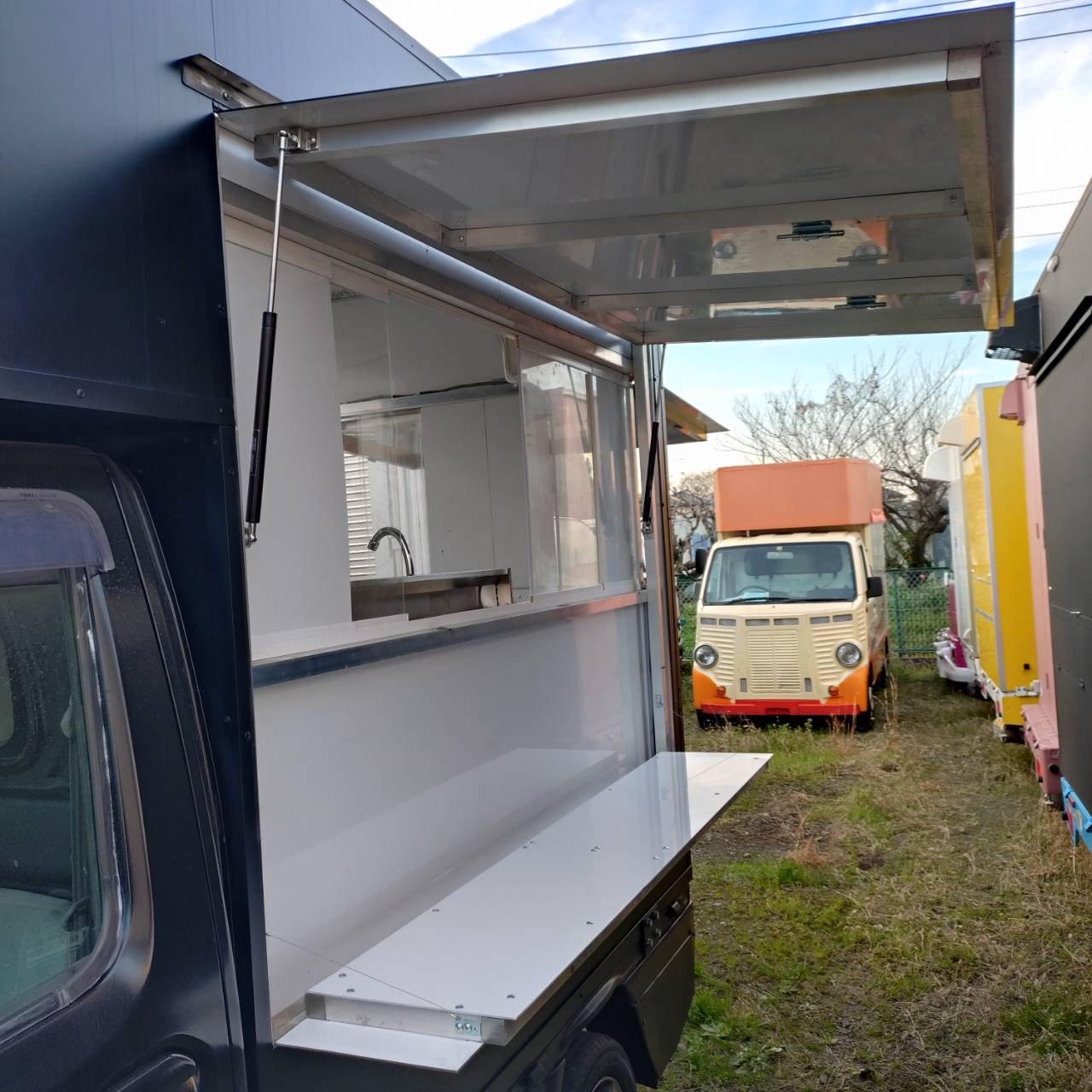 特にキッチンカー仕様で、シンクと給排水タンクが装備されています。